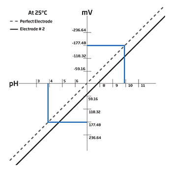 Los valores importantes en una calibración para dar seguimiento a la condición del electrodo incluyen a la pendiente y al offset. Estos datos proporcionan información sobre la condición general de la sonda.